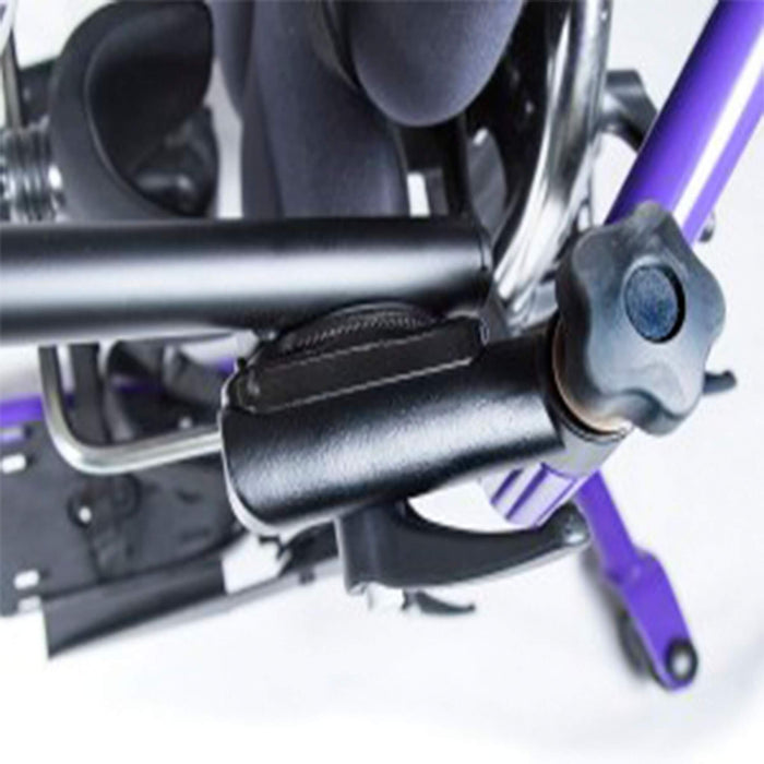The Zing swing-away tray is accessible in all positions and provides anterior support as a user while moving from supine to upright to prone and anywhere in between. The swing-away tray’s ability to stay attached to the stander makes transferring faster and more comfortable for the child. To swing-away the tray, simply loosen a single knob and move the tray to the side of the stander. This option is also perfect for activities on other surfaces, such as a sensory table or playing with friends. The tray has a single knob for each height, depth and angle adjustment which makes finding the correct configuration for the child simple. By loosening the knobs on both sides, the swing-away tray can be completely removed for unique situations. Tray size is 21″Lx24″W (53x61cm).